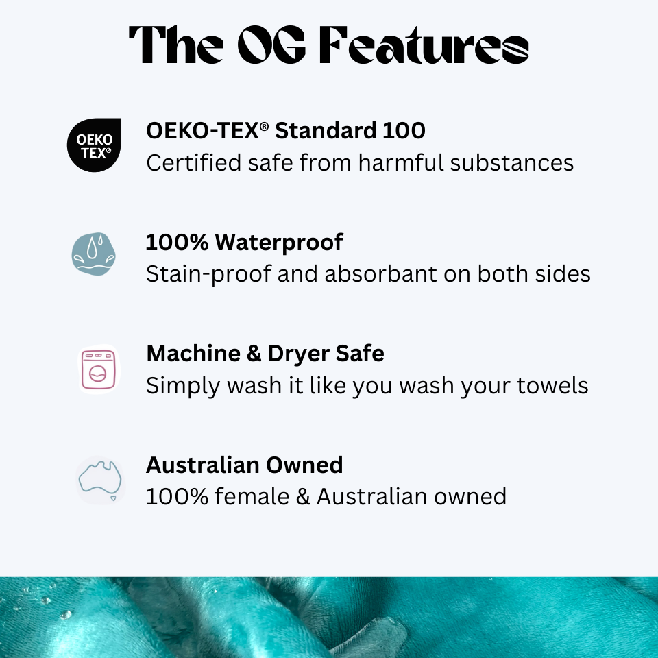 Each blanket is 100% waterproof, double-sided and absorbent.