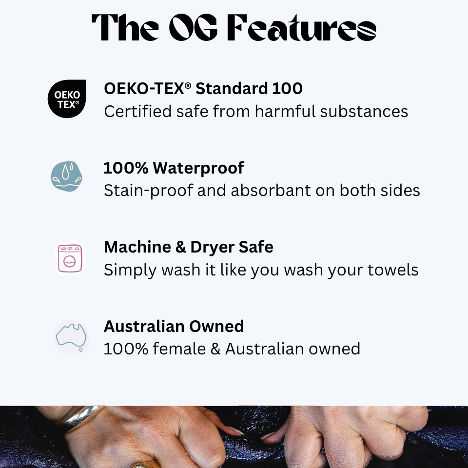 Each blanket is 100% waterproof, double-sided and absorbent.